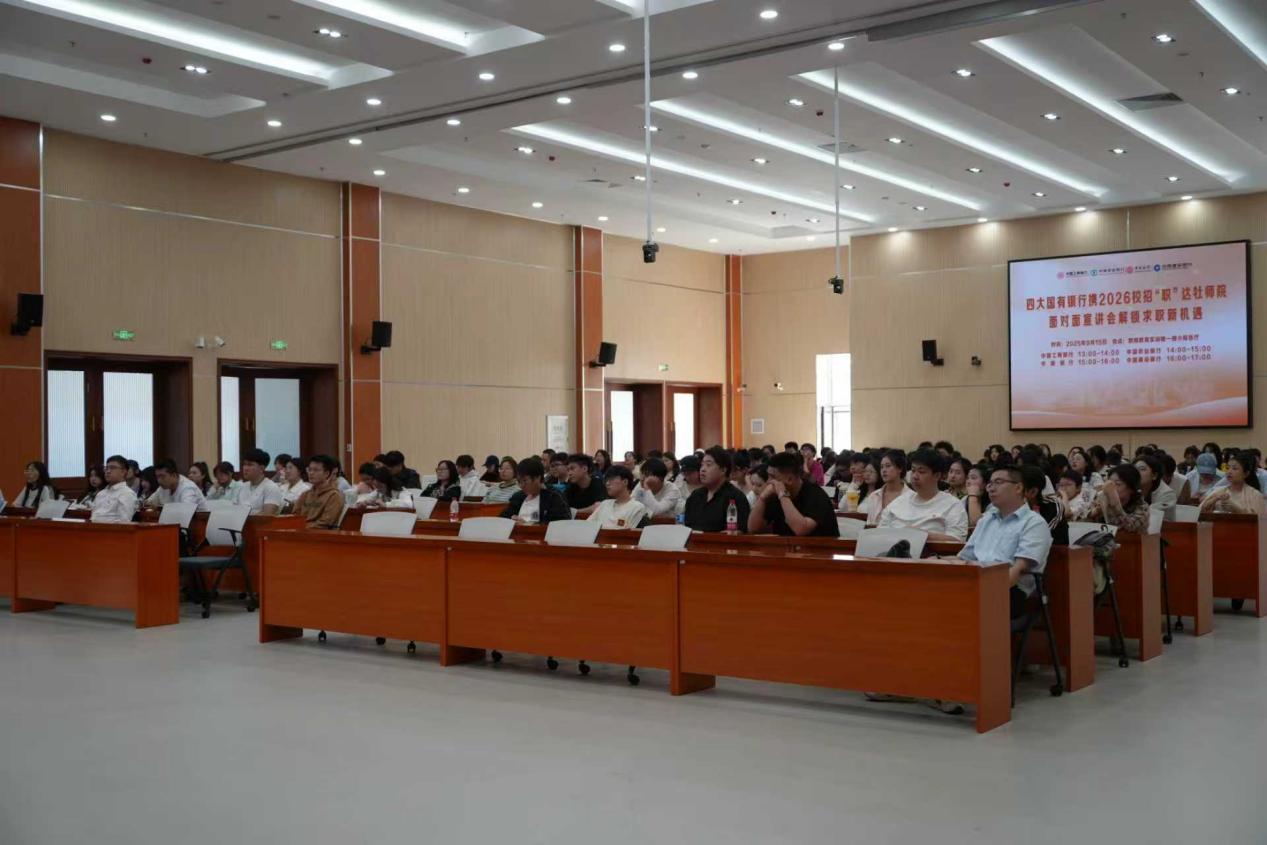 为全力推进2026届毕业生就业工作,给毕业生提供更多的就业平台,9月15日下午,牡丹江师范学院在教师教育实训楼一楼报告厅举办“四大国有银行携2026校招“职”达牡师院”专场招聘宣讲会,学校招生就业处相关人员、国有四大银行招聘宣讲团队及300余名2026届毕业生参加宣讲活动。