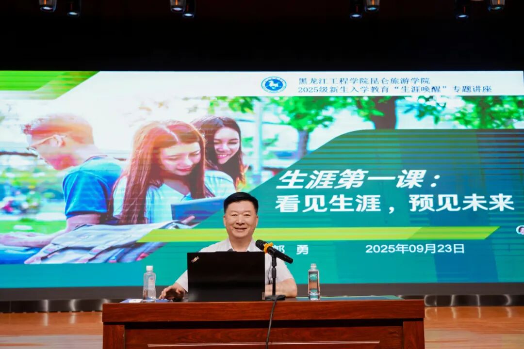 9月23日,黑龙江工程学院昆仑旅游学院在群观楼5楼报告厅专为2025级大一新生打造的“职业生涯第一课——看见生涯,遇见未来”专题讲座圆满落幕。此次课程邀请到教育部全国高校就业创业指导教师培训特聘专家、国内知名生涯教育专家郭勇教授主讲。郭教授聚焦大一新生刚入校园的迷茫与需求,带来内容丰富、实用性极强的分享,帮助新生从入学之初就明确职业发展方向,科学规划大学生活与未来职业生涯,为四年大学时光锚定清晰目标。