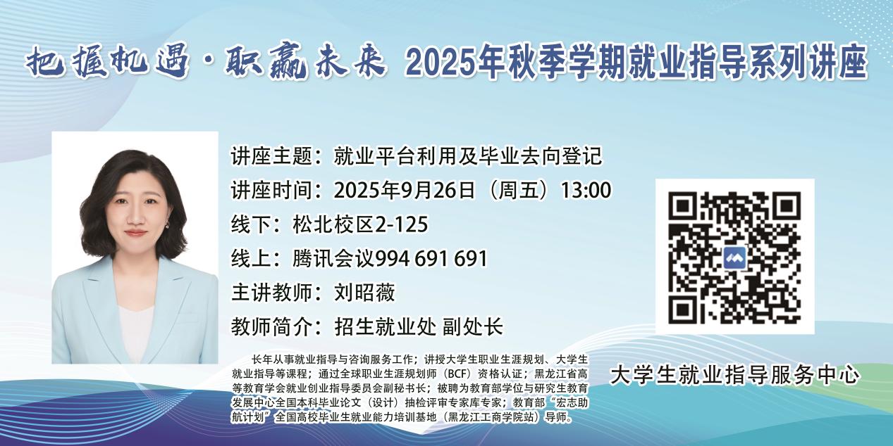 黑龙江工商学院就业部门希望通过本次系列活动讲座能够帮助2026届毕业生摆脱就业季迷茫,顺利毕业就业,促进我校毕业生高质量充分就业。