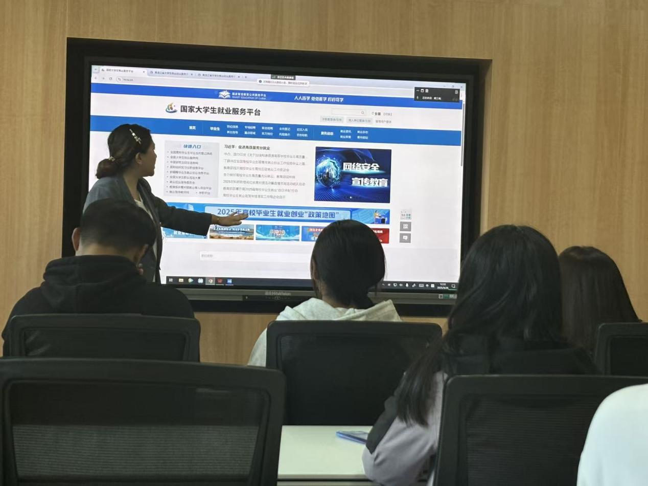 刘老师向学生介绍了教育部、黑龙江省教育厅及黑龙江工商学院的网站资源;全国高校毕业生就业能力培训网络平台、学职平台、一体化生涯平台;学校的微信公众号和就业小程序等就业平台资源,并鼓励大家多利用这些优质资源,获取高效的岗位、政策信息,提高自己的就业能力。