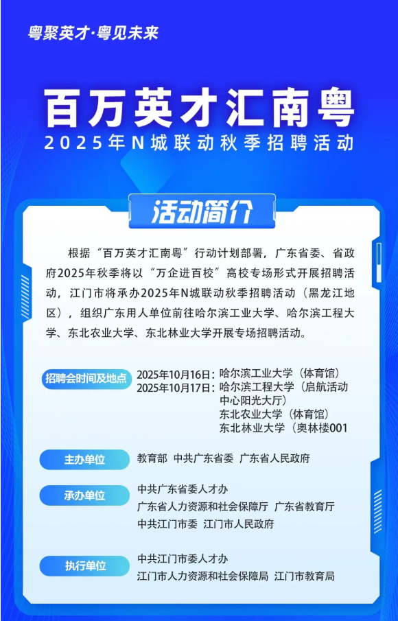 逛会攻略来啦!百万英才汇南粤,黑龙江地区专场10月16日见