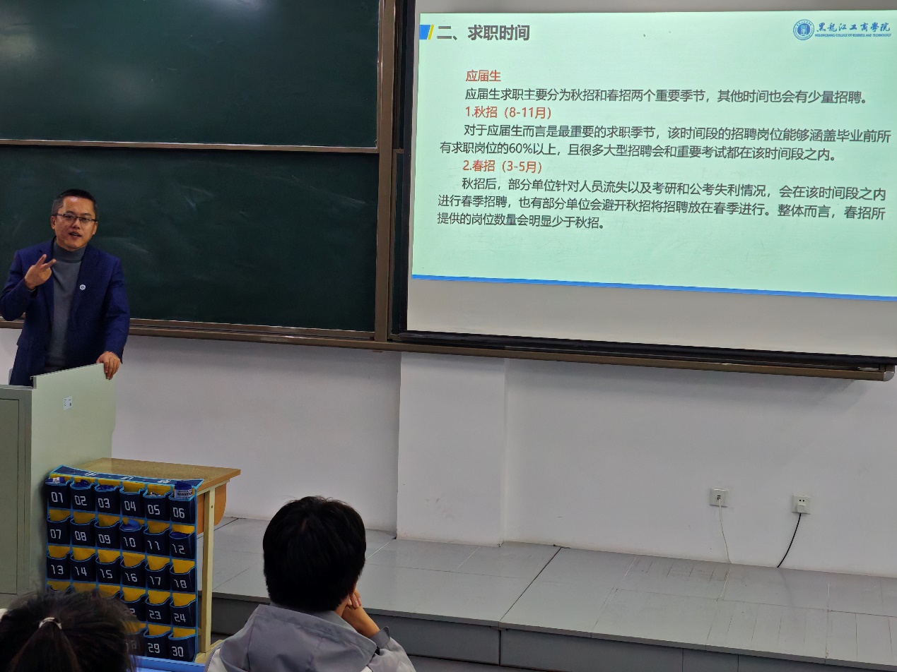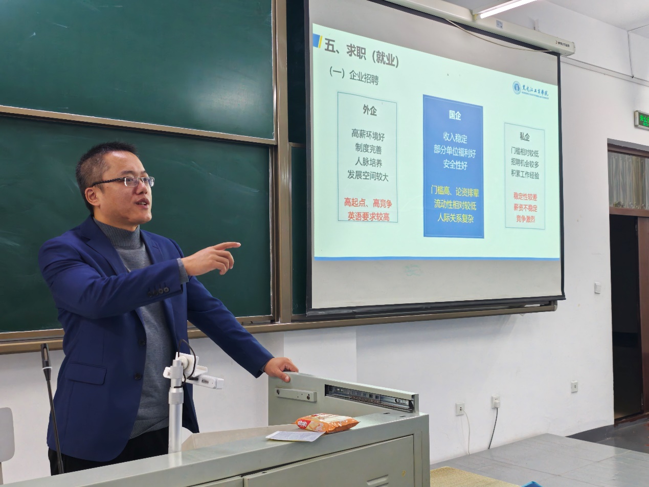10月15日下午,我校商学院会计系专任教师张鹏在松北校区一号教学楼341开展了以“求职,你准备好了吗”为主题的讲座。