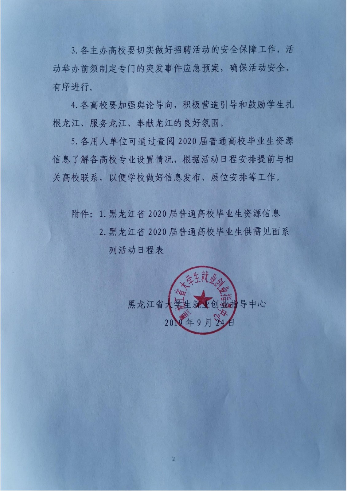 关于发布黑龙江省2020届普通高校毕业生资源信息及供需见面系列活动日程安排的通知