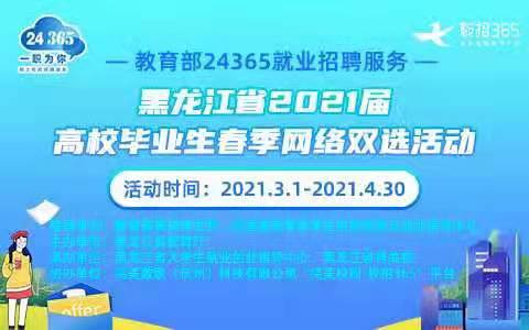 黑龙江省教育厅举办 “教育部24365就业招聘服务·黑龙江省2021届 高校毕业生春季网络双选活动”的通知