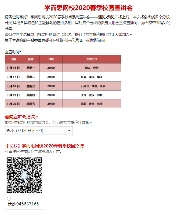 经与学而思网校HR沟通、确认,现将学而思网校2020春季校园云宣讲会信息公布如下,欢迎有意的同学积极参与